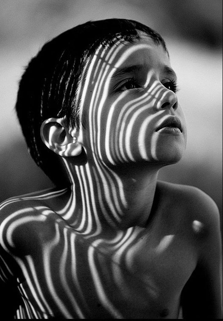 портрет, усложненный игрой света и тени.